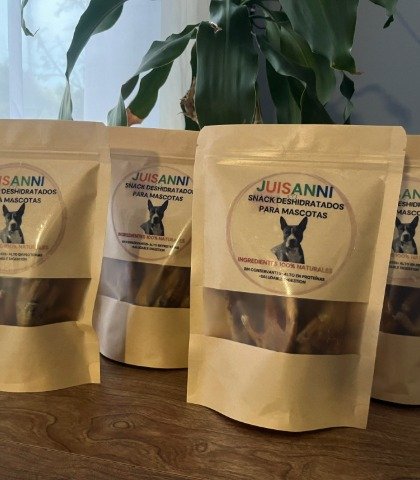 Snack de masticación prolongada, rico en cartílago para el cuidado dental.