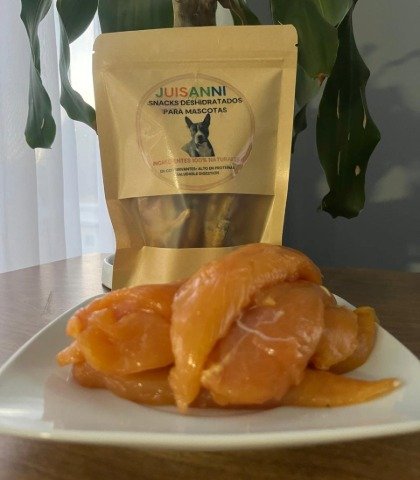 Nuestra pechuga de pollo es snack de un solo ingrediente (sí, ¡solo pollo!). Crujiente, sabrosa y saludable, es ideal para entrenar, premiar o simplemente decirle a tu mascota cuánto la quieres. Sin químicos raros, solo el sabor que ellos aman de forma natur